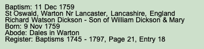 The last thing we know about Richard Dickson comes from a newspaper notice regarding his death (see below), saying that his dead body was intended to be kept unburied until resurrection day in a London house which seems to have been prevented by the coroner. There is an extended report about these events to be found in russ McGillivray's biography of R.W.Dickson.