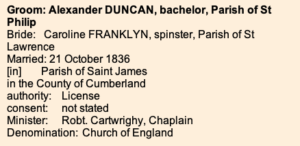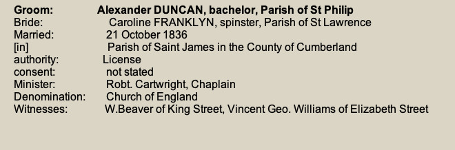 If they gave their ages correctly, Alexander must have been born between 17/9/1812 and 16/9/1813 and Caroline between 17/9/1817 and 16/9/1818.