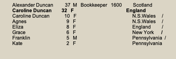So Alexander and Caroline had evidently migrated to Australia, married, had two daughters, returned to England, had a third daughter and crossed the Atlantic; Grace was their fourth daughter; then they travelled the relatively modest distance to Pennsylvania, where their first son and sixth daughter were born. It is easy to imagine Caroline as typically pregnant, at sea and constantly looking round in case small children disappeared overboard.