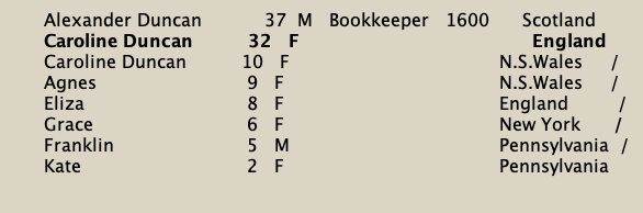 She was buried at Rookwood - a vast cemetary at Sydney which, as Robin Johnson says, even had its own railway station at one point - and under the surname Duncan. In 1864 she had married Captain David Fermaner (1816 - 1893), harbourmaster of Port Albert, Victoria. So possibly they had separated and she had resumed calling herself Duncan. Anyway, the following death notice also refers to her: