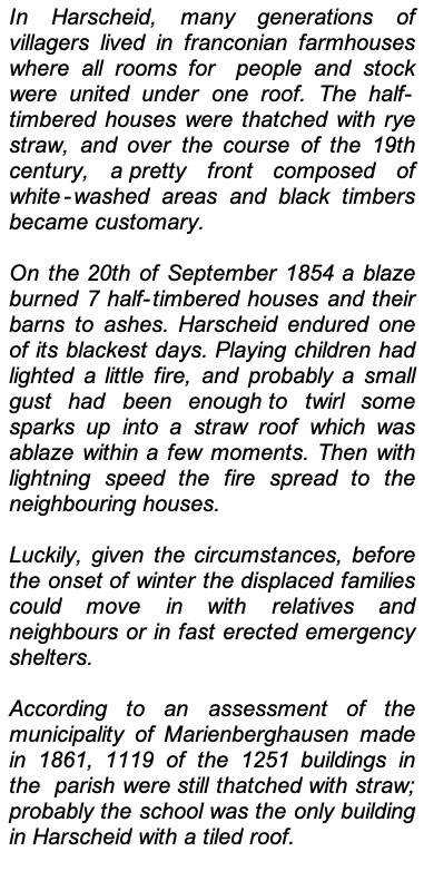 Although my parents were diligent and economical, the soil was very poor. Moreover on the 20th of September 1854 in Harscheid 9 houses burned down and 9